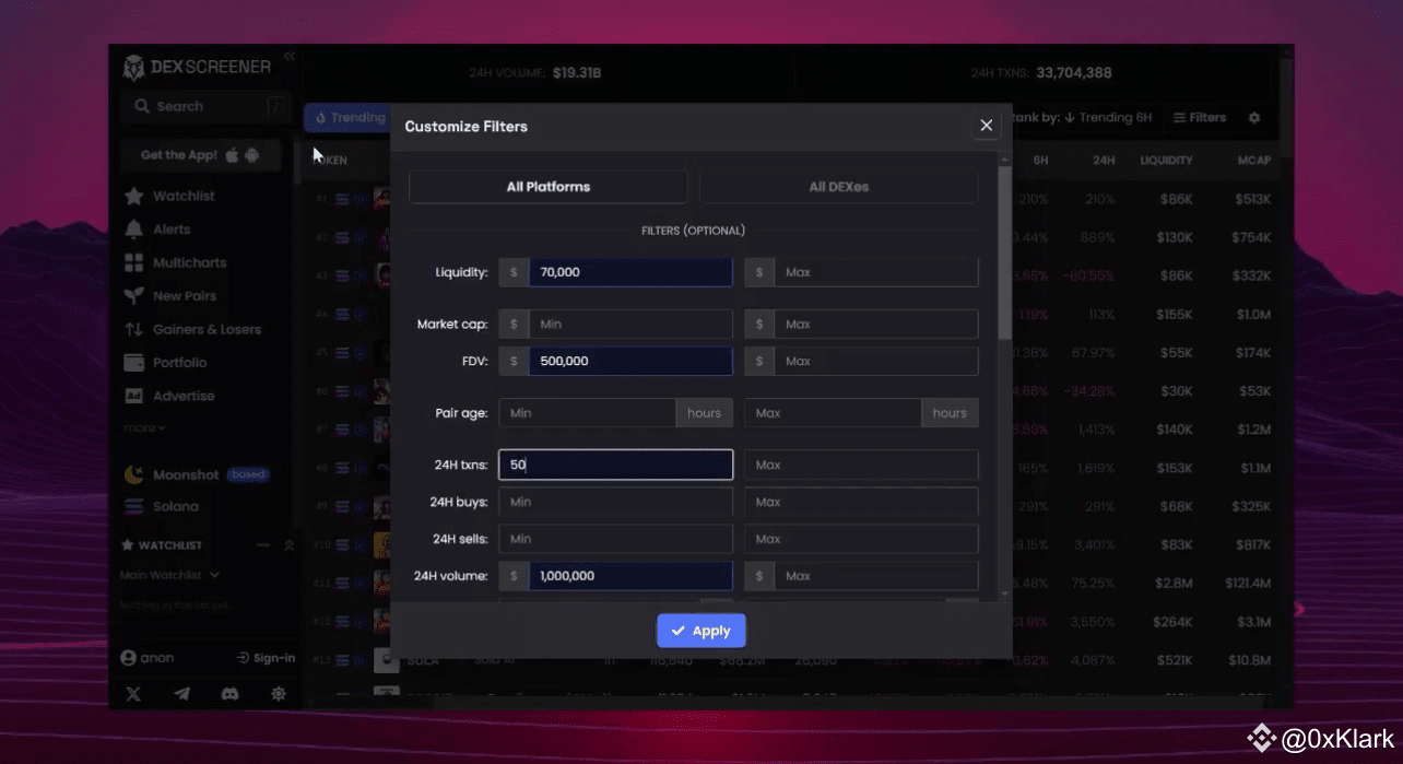 ->Use tools like @dexscreener, but avoid jumping on the first trending coin you spot, you're going to regreat it