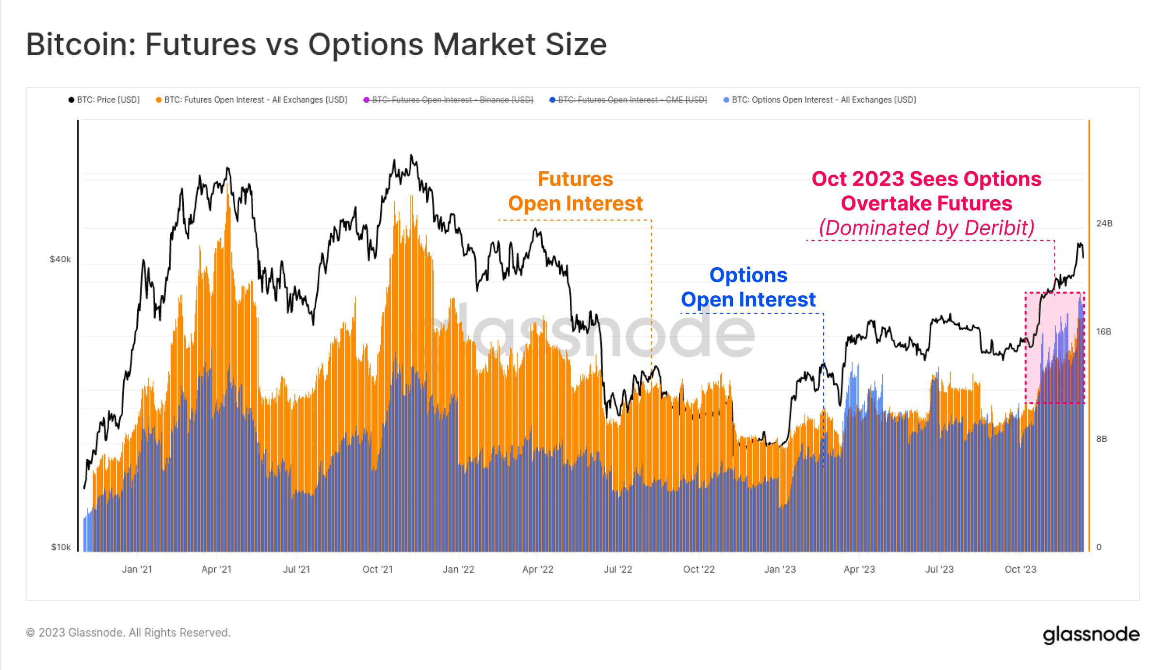 2020-23 年周期的一个显著特征是期货和期权市场成为价格敞口和流动性的首选之地。事实证明,2023 年是这一发展过程中的重要一年,因为期权市场的未平仓合约规模已发展到与期货市场相当甚至超过期货市场。