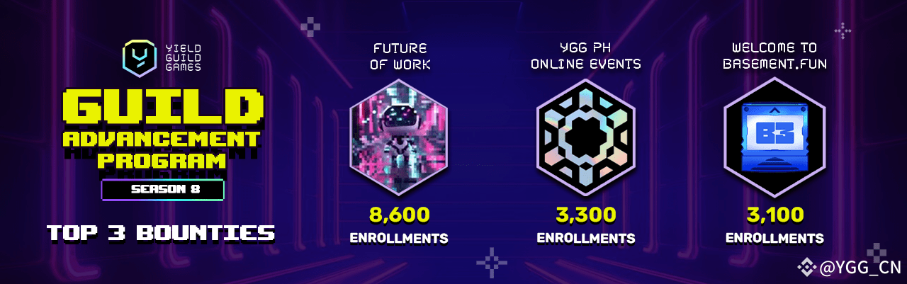 第八赛季的其他悬赏任务涉及游戏相关任务和任务导向型任务,包括游戏测试、内容创作、社区运营以及通过 Metaversity推广Web3教育。本赛季还包括针对地区公会合作伙伴平台和游戏生态系统的任务,这其中包括OLA GG、W3GG、KGeN、YGG越南、YGG中国和Game7。参加YGG Play峰会的社区成员还可以完成该活动的特别奖励。