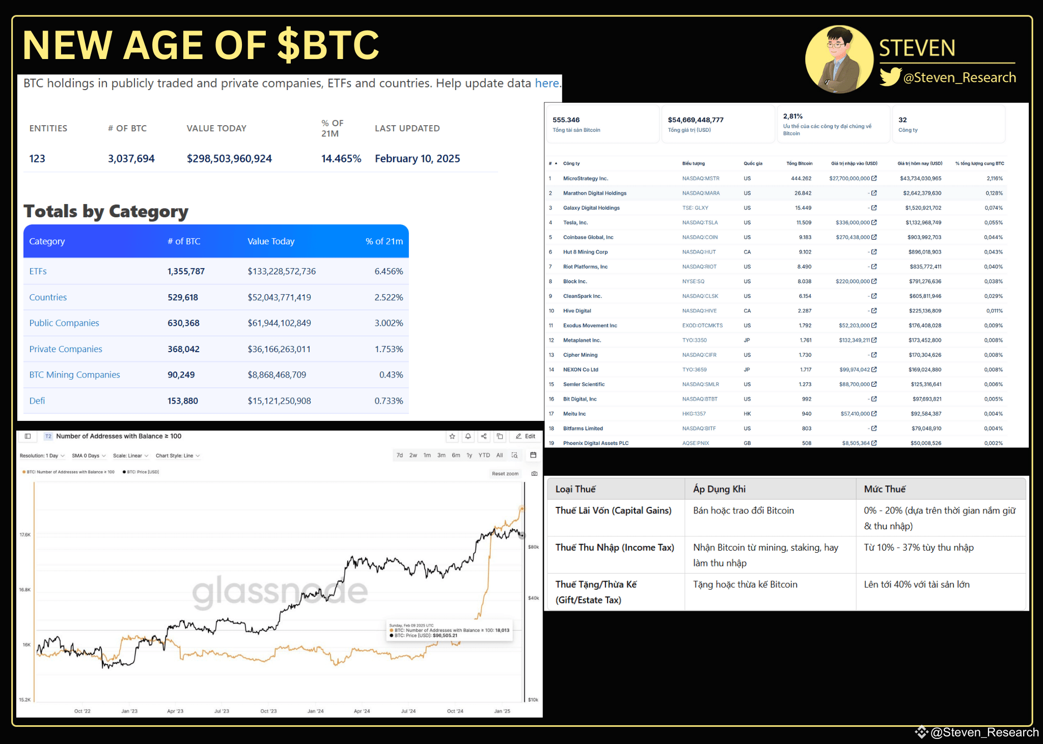- Hiện tại có tới 123 Quốc Gia và Công ty công bố nắm giữ $BTC, nắm giữ hơn 3 triệu #BTC, tức gần 15% tổng cung Bitcoin. Trong đó các công ty đại chúng nắm giữ tổng cộng 622.735 bitcoin, chiếm 2,965% tổng nguồn cung,...