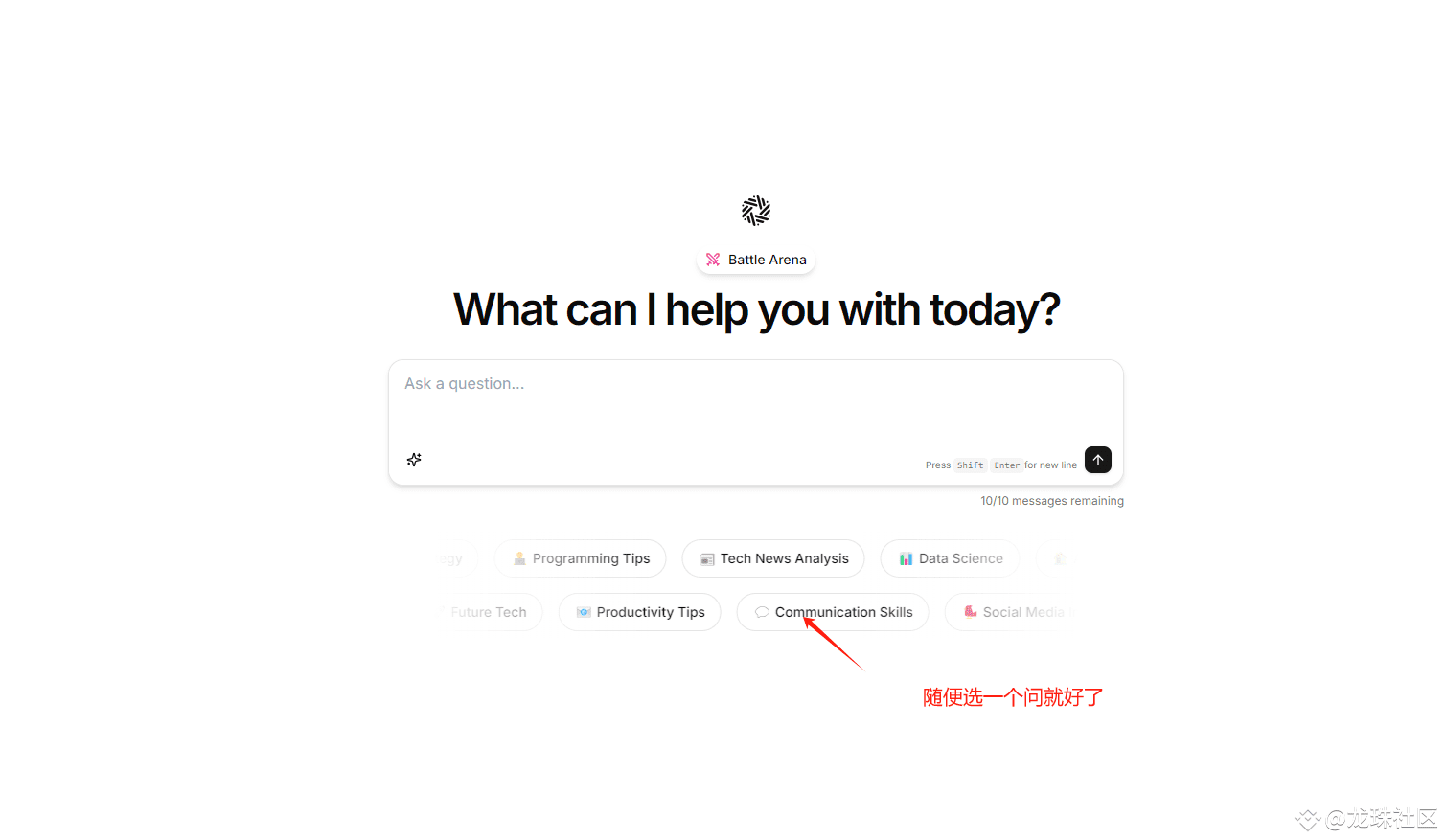6.左下角可以生成新的提问,然后进行投票,右下角有显示交互次数,一天可以与机器人交互十次服务器卡卡的