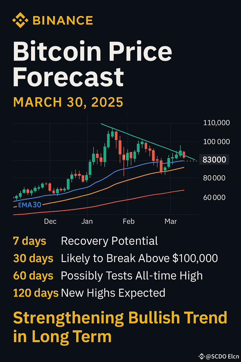另外一种可能是,如果4月份出现意外利空(如宏观数据不佳或监管消息扰动),比特币也可能延续一段横盘整理,运行区间收敛于75K-90K之间,为下一步走势蓄力。综合判断,30天时间尺度上倾向于震荡上行:主路径是挑战并站稳百千关口,但不排除在突破前经历数次回踩巩固。