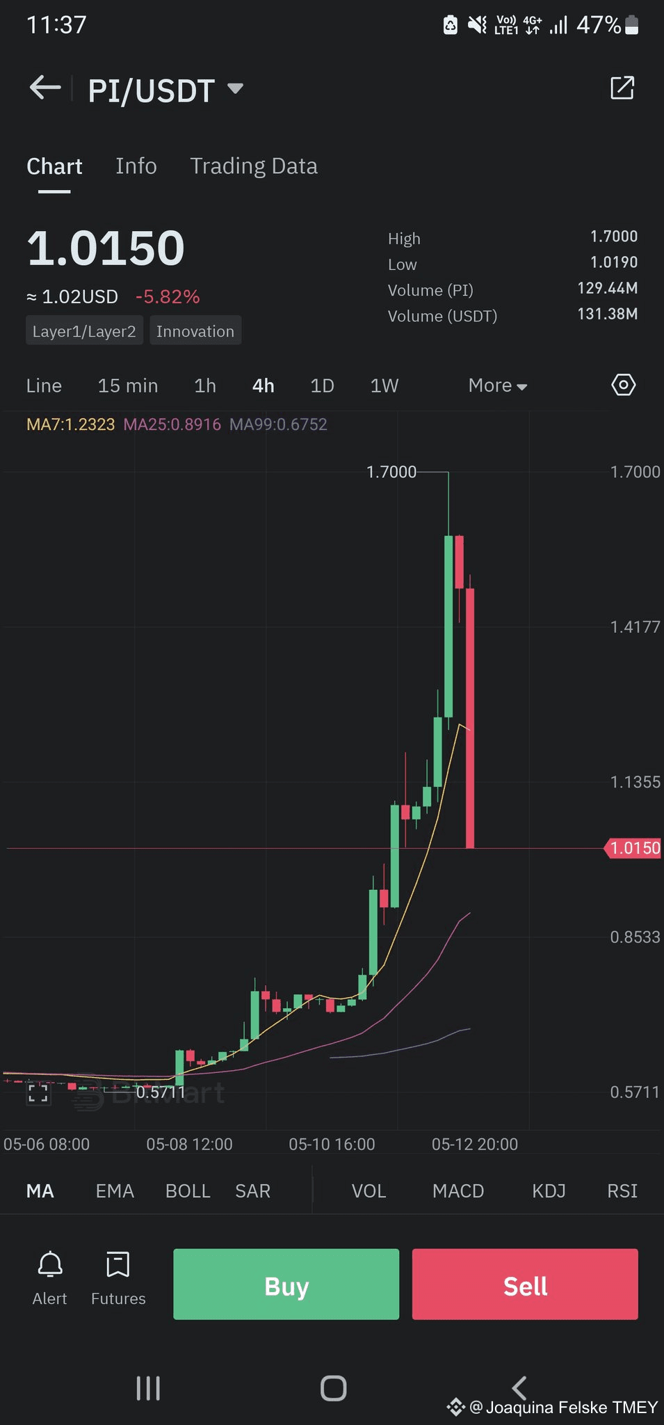 In just 3 hours, the price of Pi dropped nearly 50% from $1.7 to $0.99, causing significant losses for investors. What is noteworthy here is that Nicolas did this on purpose. Let's analyze: just to have beautiful data for Nicolas to present at Consensus 2025, the Pi Network engaged in the act of creating false trading volume to deceive investors. Nicolas used about $5 million to conduct nearly 200 buy and sell transactions of Pi on exchanges to artificially inflate the trading volume of Pi to over $1 billion. Many investors fell into Nicolas's trap when they FOMOed into the price of Pi, resulting in heavy losses. A project with a market cap of $10 billion lost nearly 50% of its market cap in just 3 hours, indicating that this project indeed has issues with fraudulent liquidity creation to mislead investors. It is certain that when the price of Pi hit $1.7, Nicolas used auxiliary wallets to deposit Pi onto exchanges and sold them, reaping tens of millions of dollars from investors. We are like sheep being toyed with by Nicolas, having our wool sheared.