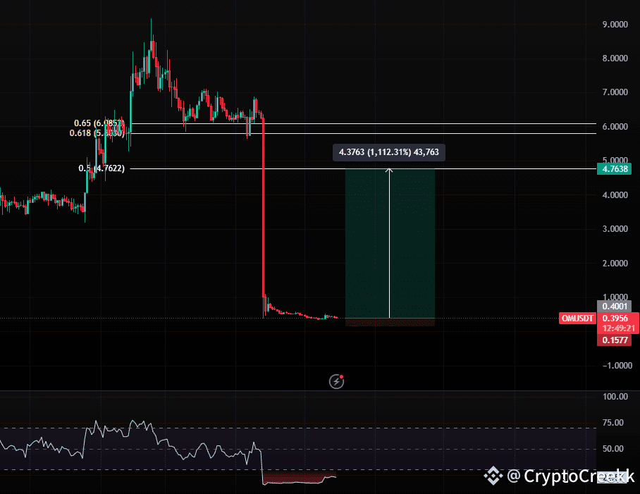 As we can see, OM had a significant fall few weeks back. Currently, it is extremely oversold right now as you may notice in the RSI indicator. And clearly it is undervalued, few days back we saw a positive volume after months of negative volume. That is a sign that significant inflows again can be entered in OM, make sure you have OM in your bag or in future with Risk Management.