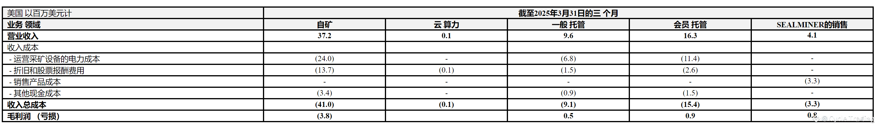 事件:比特小鹿(Btdr.US)发布2025财年第一季度报告。公司一季度实现营业收入7010万美元,同比下降41.3%,环比提升1.6%。其中,自营业务收入为3720万美元,同比下降10.4%;综合毛利润为负320万美元,毛利率为-4.6%,主因为不丹枯水期导致电价上升,小鹿短暂关闭不丹矿场所致,但二季度进入丰水期后,电价已回到0.042美元/kwh的水平;Seal矿机销售410万美元,标志公司矿机销售正式开始。调整后的EBITDA为负5610万美元,2024年同期为正2730万美元。净利润为4.1亿美元,主要为2024年四季度计提的可转换票据(4.487亿美元)以及泰达期权(0.584亿美元)的公允价值冲回所致。