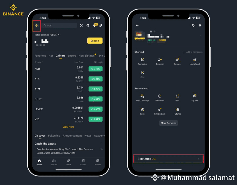 Tap on the top left corner of your home screen, you’ll see Binance Lite written at the bottom