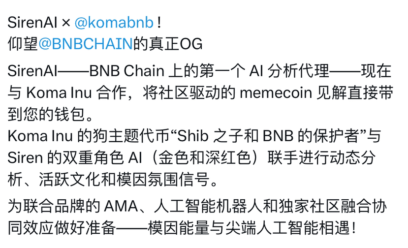 1. 赛道红利:AI Agent是2025年加密市场核心叙事之一,BNB Chain将其视为生态突围的关键,SIREN作为头部项目将优先受益;