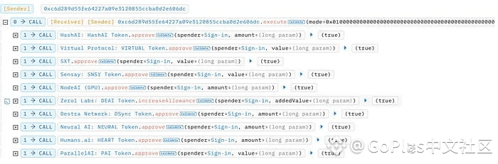 5月24日,#InfernoDrainer 钓鱼团伙利用 Metamask 7702-Delagator 合约的批量执行功能批量骗取了用户(0xc6D2…06DC)的代币授权,并实施了钓鱼攻击,损失超14.6万美元的 $HashAI $HUMANS $ParallelAI $NeuralAI $DSync $Zero1 $NodeAI $Sensay $Virtual.
