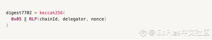 验证方式:共识层通过ecrecover(digest7702, sig) == tx.from 完成验证。
