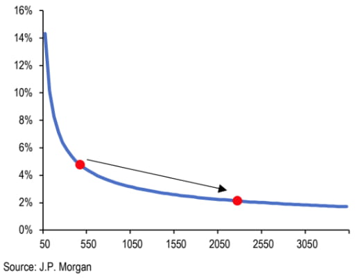Assume you are a validator on the Ethereum network, responsible for confirming and processing transactions. As a validator, your main goal is to maximize your staking yield, which is determined by the number of validators present in the network. The graph illustrates how the staking yields correlate with the number of validators in the network.