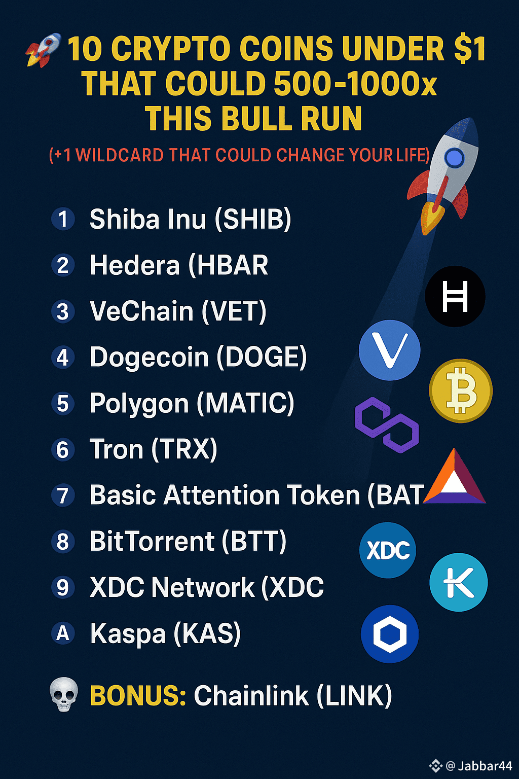 Okay, not under $1 â but hear us out. Chainlink is the oracle backbone of DeFi and Web3. Staking is live, and real-world asset (RWA) tokenization is on the horizon. When that narrative explodes, LINK could melt faces.