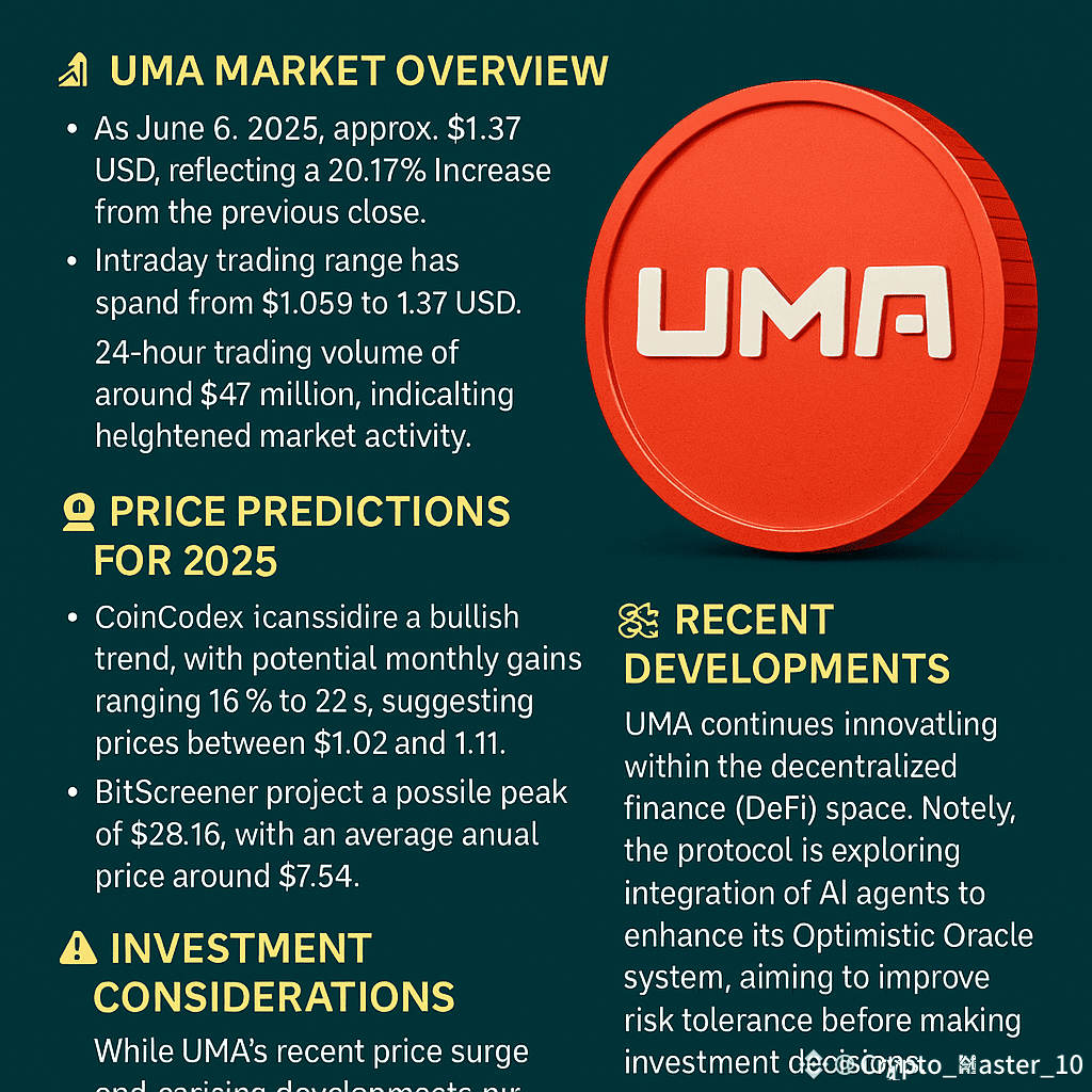 UMA $UMA continues to innovate within the decentralized finance (DeFi) space. Notably, the protocol is exploring the integration of AI agents to enhance its Optimistic Oracle system, aiming to improve the accuracy and efficiency of on-chain data verification.