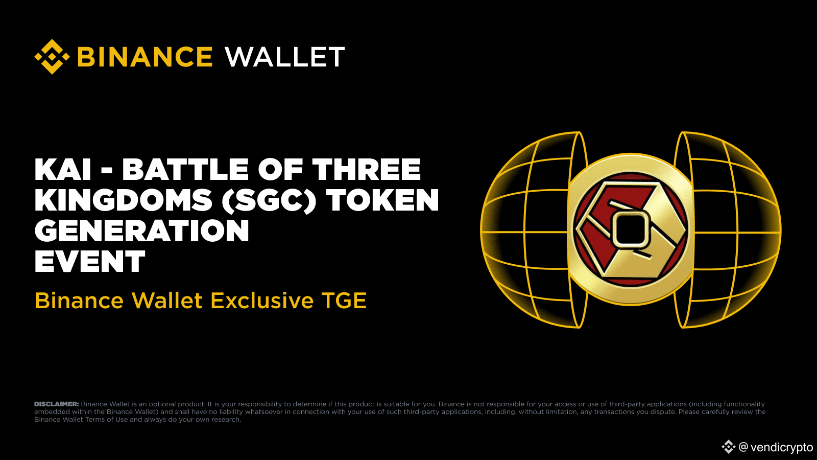 Token Generation Event (TGE) eksklusif untuk SGC (Sangokushi Taisen - Battle of Three Kingdoms) telah sukses digelar melalui Binance Wallet dan PancakeSwap pada 13 Juni 2025.