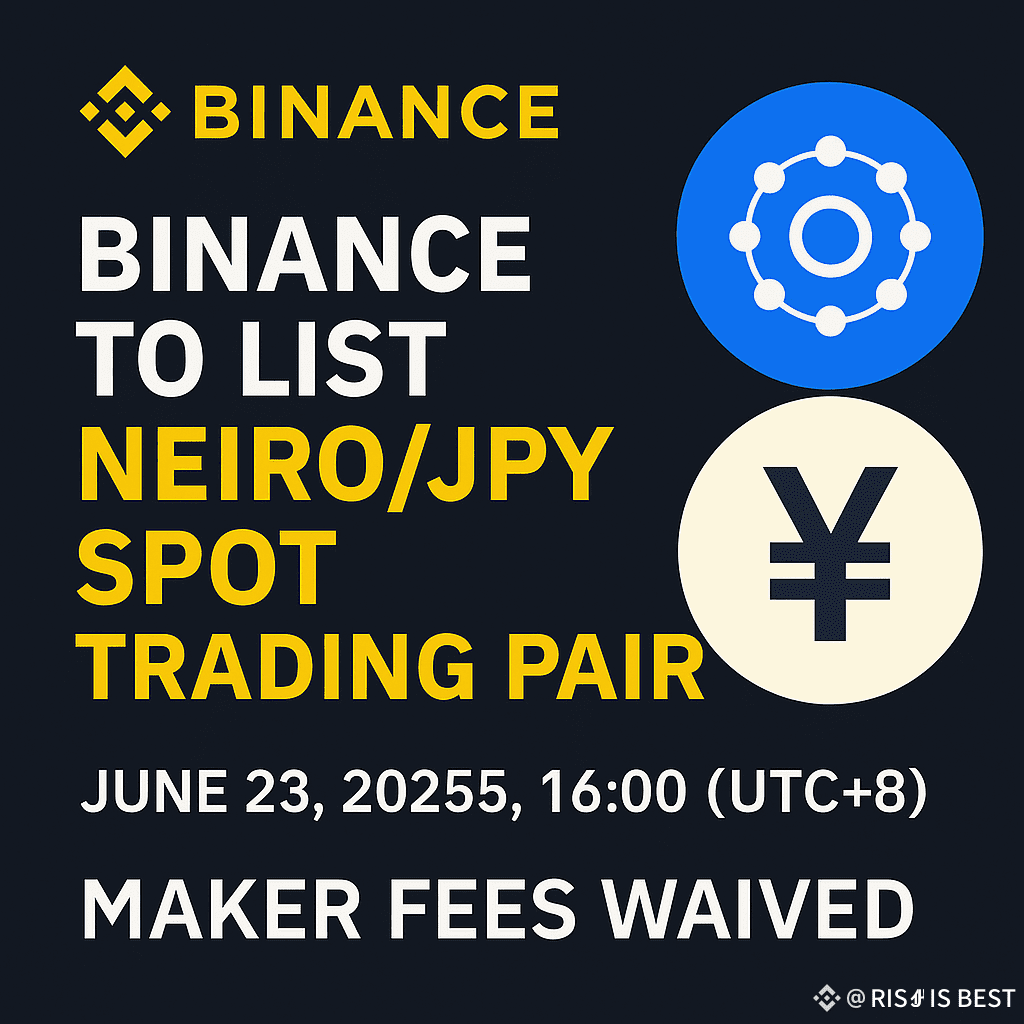 Binance has announced the upcoming launch of a new spot trading pair NEIRO/JPY, set to go live on June 25, 2025, at 16:00 (UTC+8). To celebrate the listing, Binance will waive maker fees for this pair from June 25 until July 25, 2025, at 15:59 (UTC+8), offering Japanese yen traders an attractive low-cost opportunity to access NEIRO liquidity .