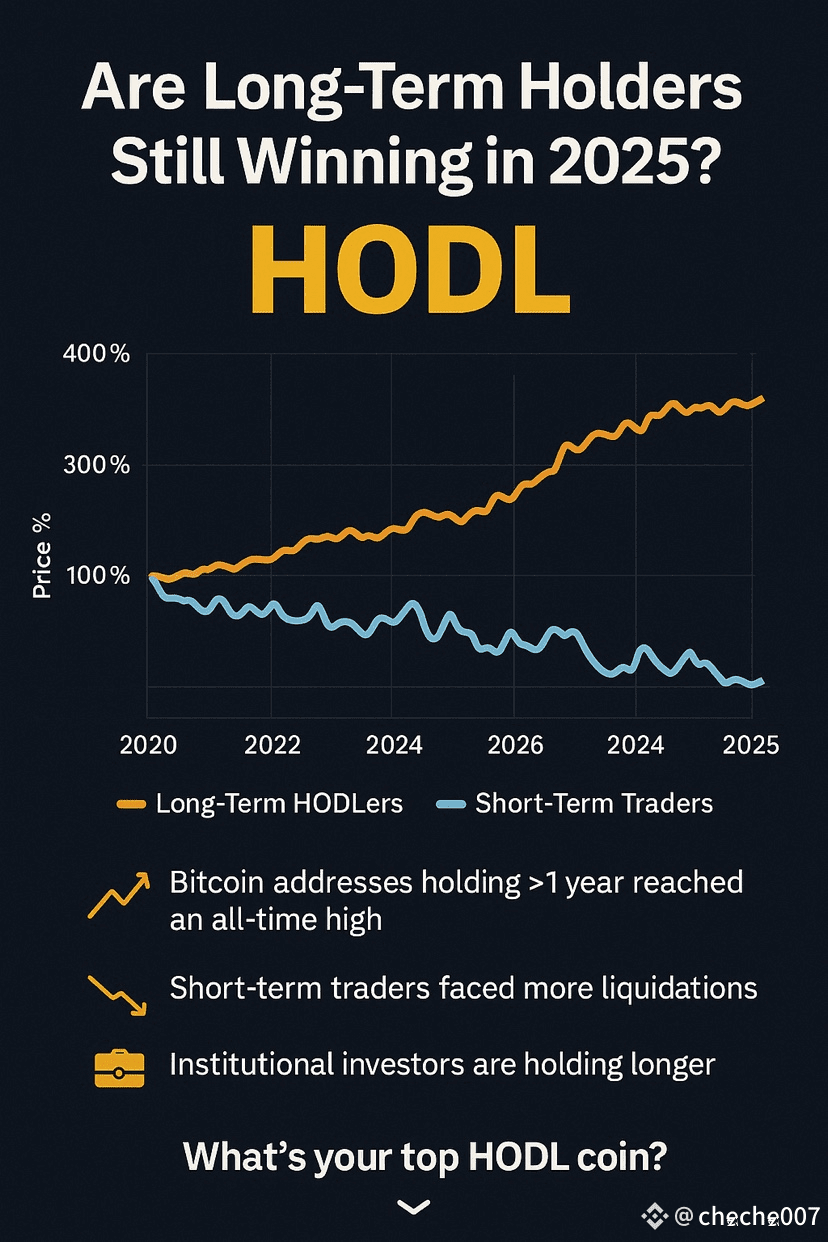 In the fast-paced world of crypto, everyone talks about quick flips, airdrop farming, and short-term gains. But data shows that long-term holders — the ones who weather volatility and accumulate — are outperforming the hype traders this cycle.