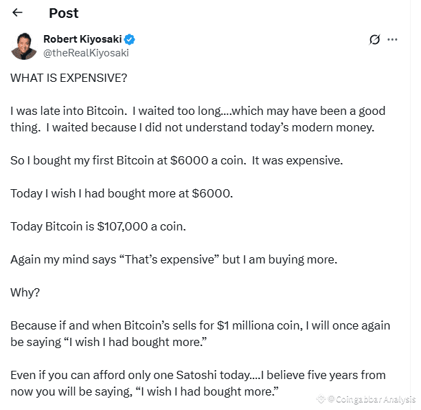 Currently it is trading around $107,000-$107,580. Kiyosaki said his slow start was because he didn’t fully understand digital money back then.
