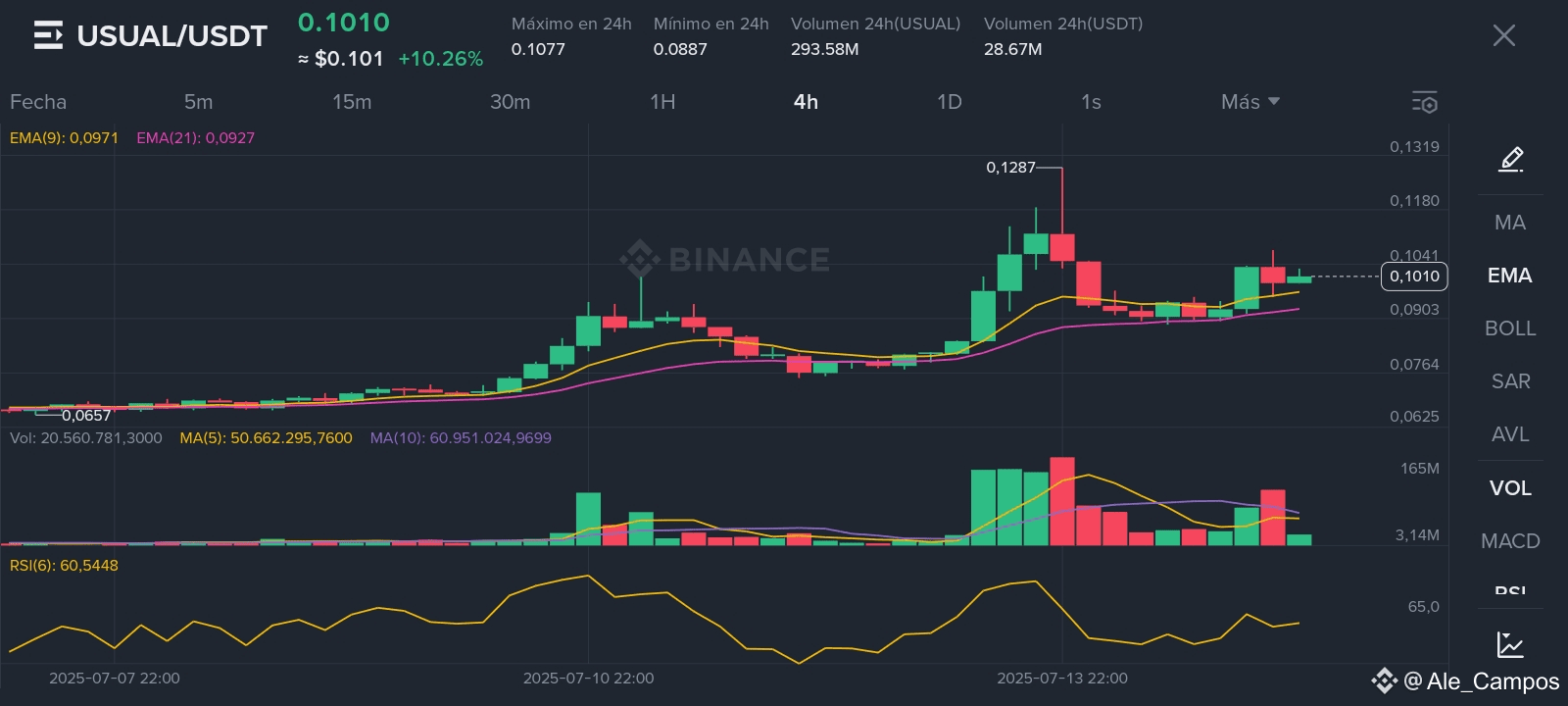 Rango intradía: Mínimo ≈ 0.0893 USD, máximo ≈ 0.1064 USD