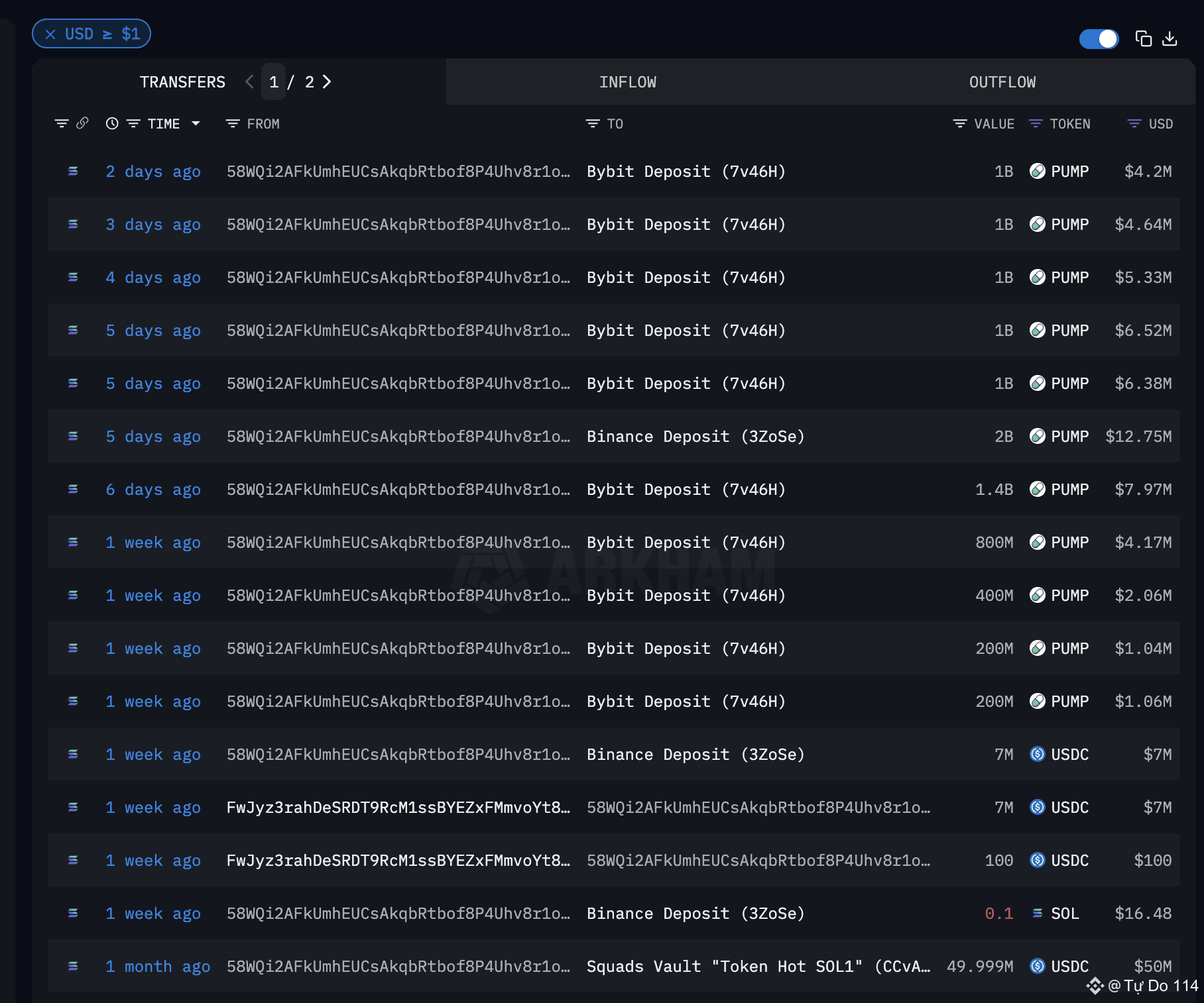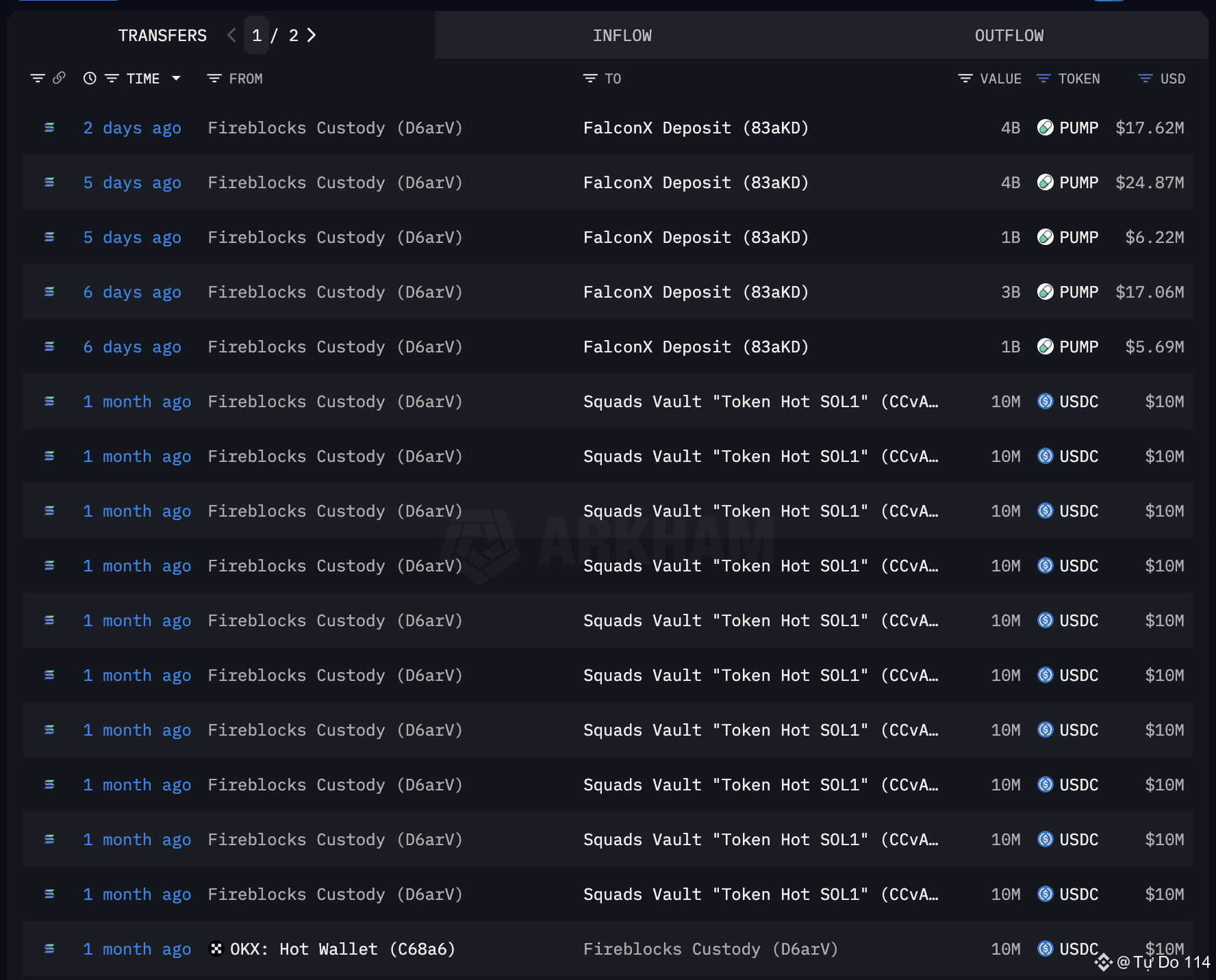 Đã bán 130 tỷ PUMP (~71.46 triệu USD) thông qua FalconX vào các sàn tập trung (CEX), giá trung bình 0.0055 USD/PUMP, lãi 19.5 triệu USD.