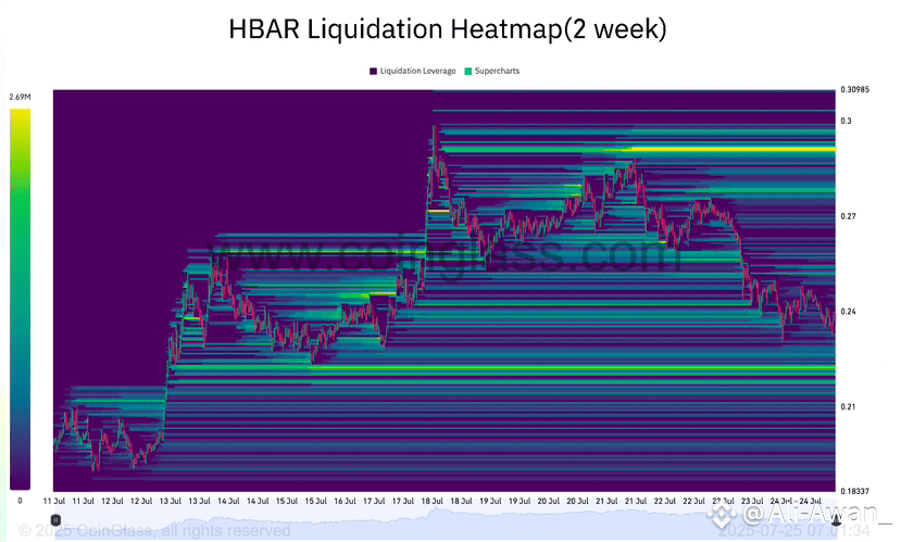 However, a decisive break below this support zone could expose HBAR to further downside, potentially dragging the price as low as $0.18.