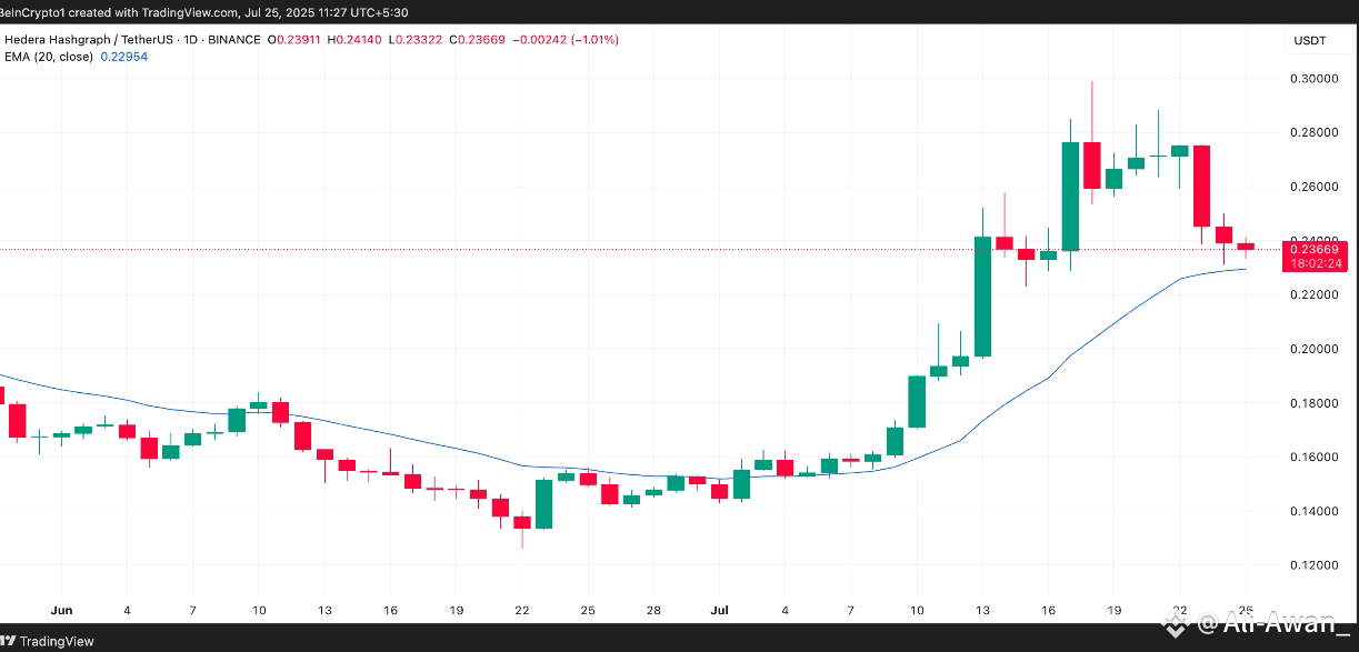 HBAR’s Fate Hangs on 20-Day EMA at $0.22