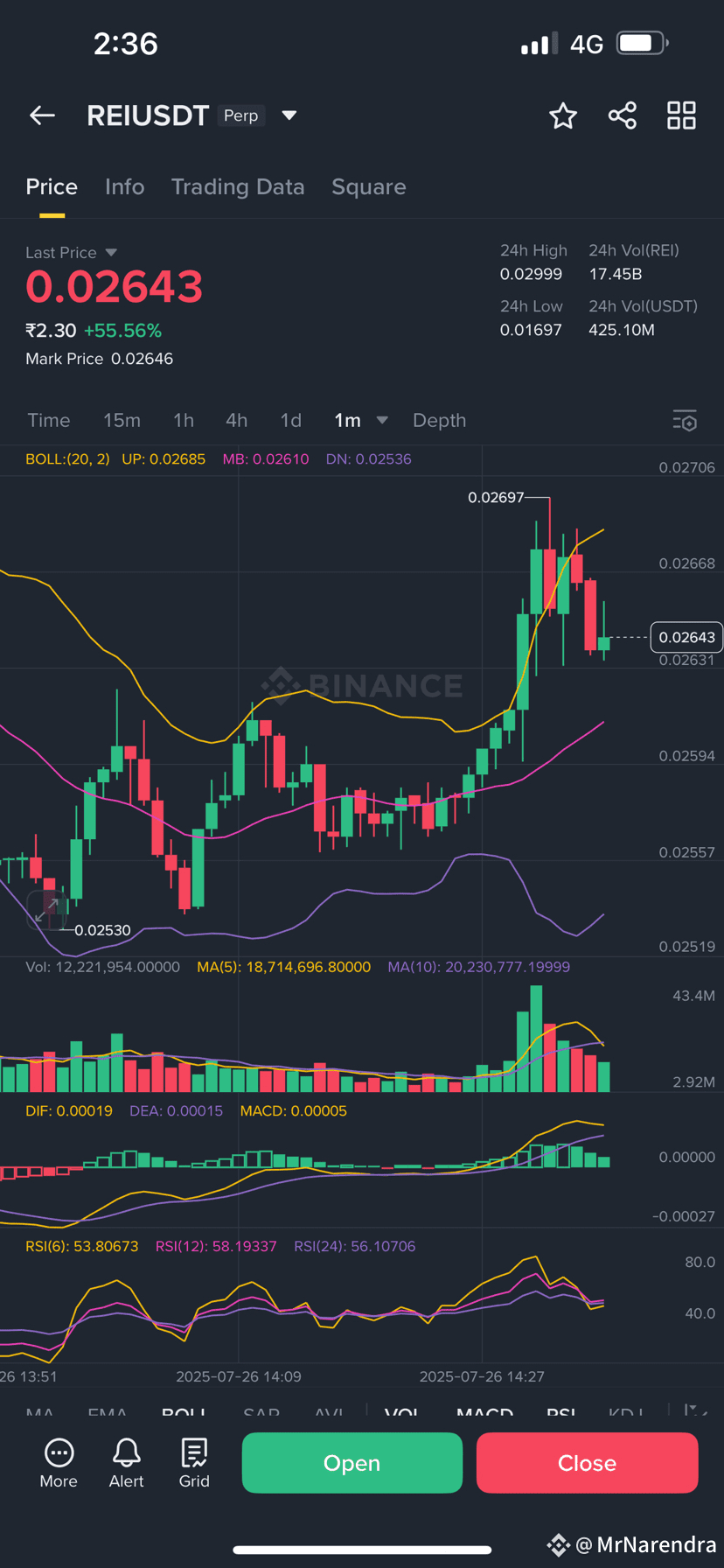 Hey #Binancians! Let's dive into #REIUSDT Perp on the 1-minute chart. After its strong 24-hour run (+55.56%), REI is currently in a consolidation phase. Bollinger Bands are contracting, indicating reduced volatility – a calm before the storm? 🤔