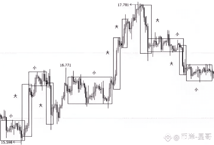 大幅与小幅体现的是K线幅度的交替过程。我们在大小交替中寻找进场时机、控制贪欲与恐惧心态。