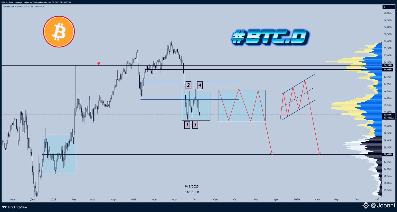 Если пробьём ниже 60% — откроется портал к 58%, а там альткоины могут устроить фейерверк 🚀