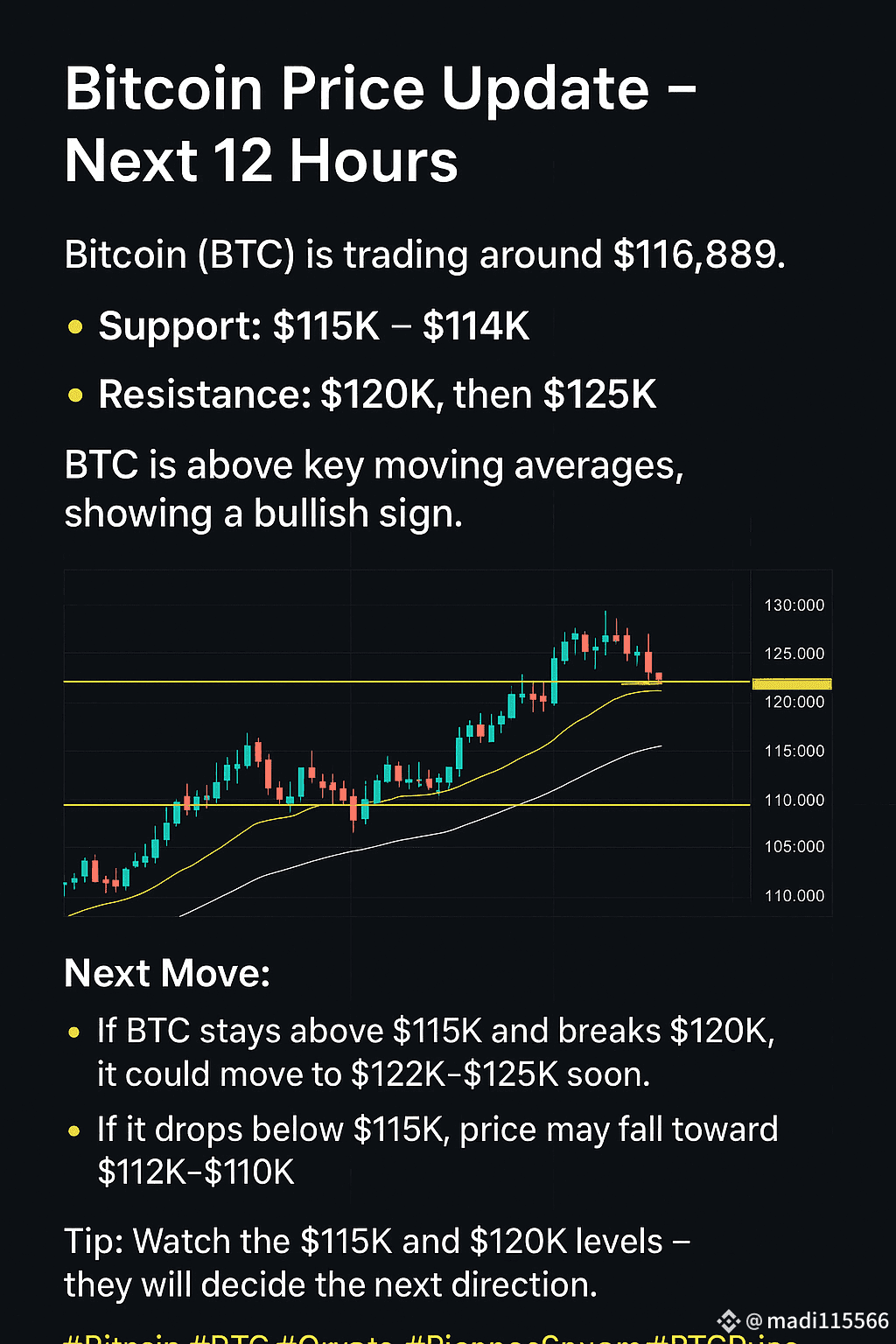 Tip: Watch the $115K and $120K levels – they will decide the next direction.
