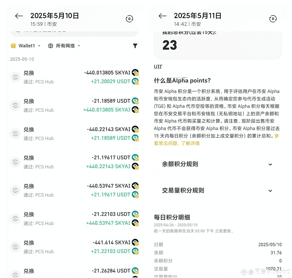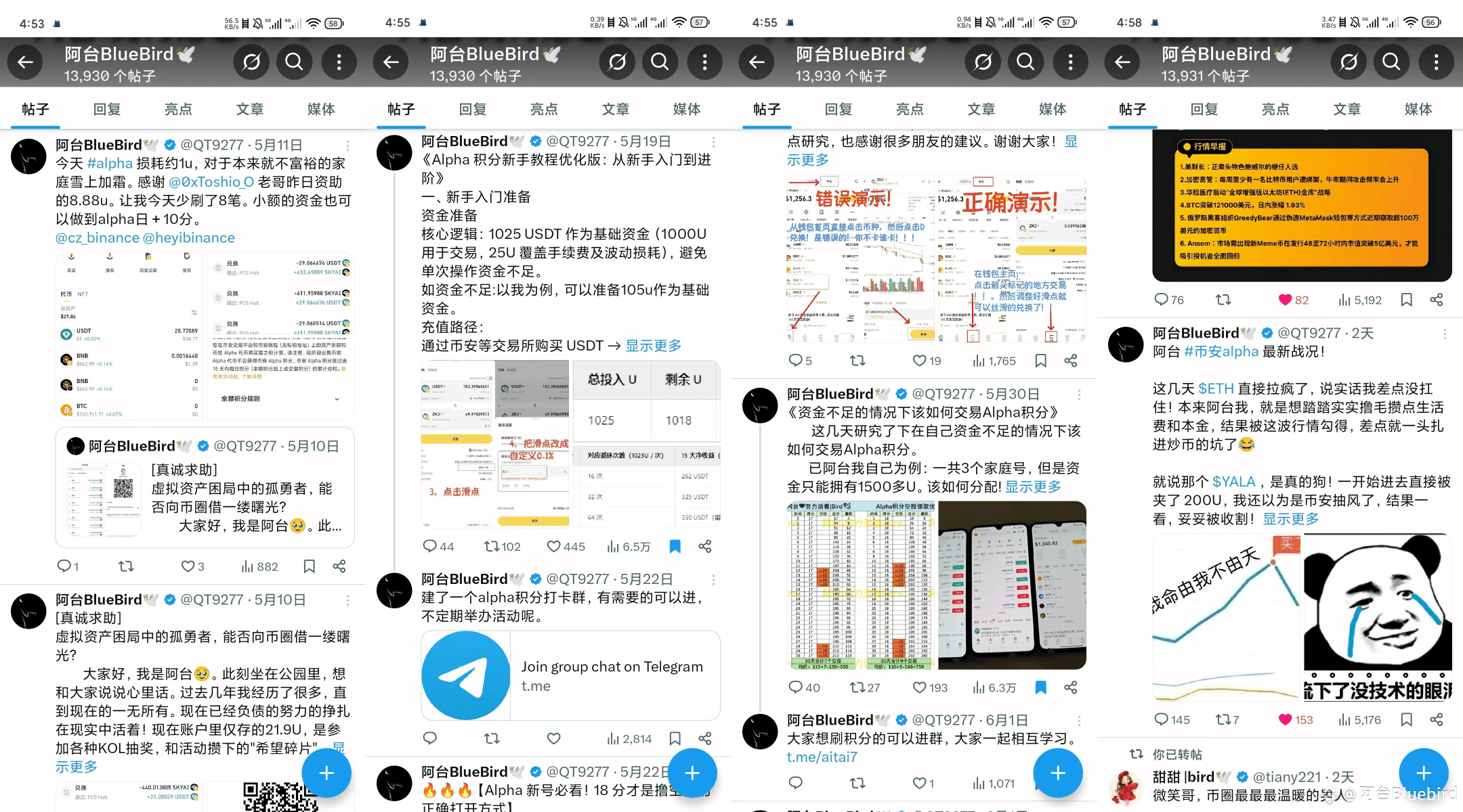 于是我重新回到币圈,每天翻遍圈内KOL的文章,研究撸毛的方法、交易的逻辑,一点点摸索积攒本金的路径。那段时间,我疯狂参与抽奖、写帖子,只为能凑齐重新开始的本钱。就在这个过程中,我接触到了币安Alpha——命运的齿轮,从这时起悄然转动。