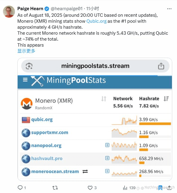 自从上周 $XMR 被 Qubic 官宣 51% 攻击之后,社区事后复盘得出了几个结论: