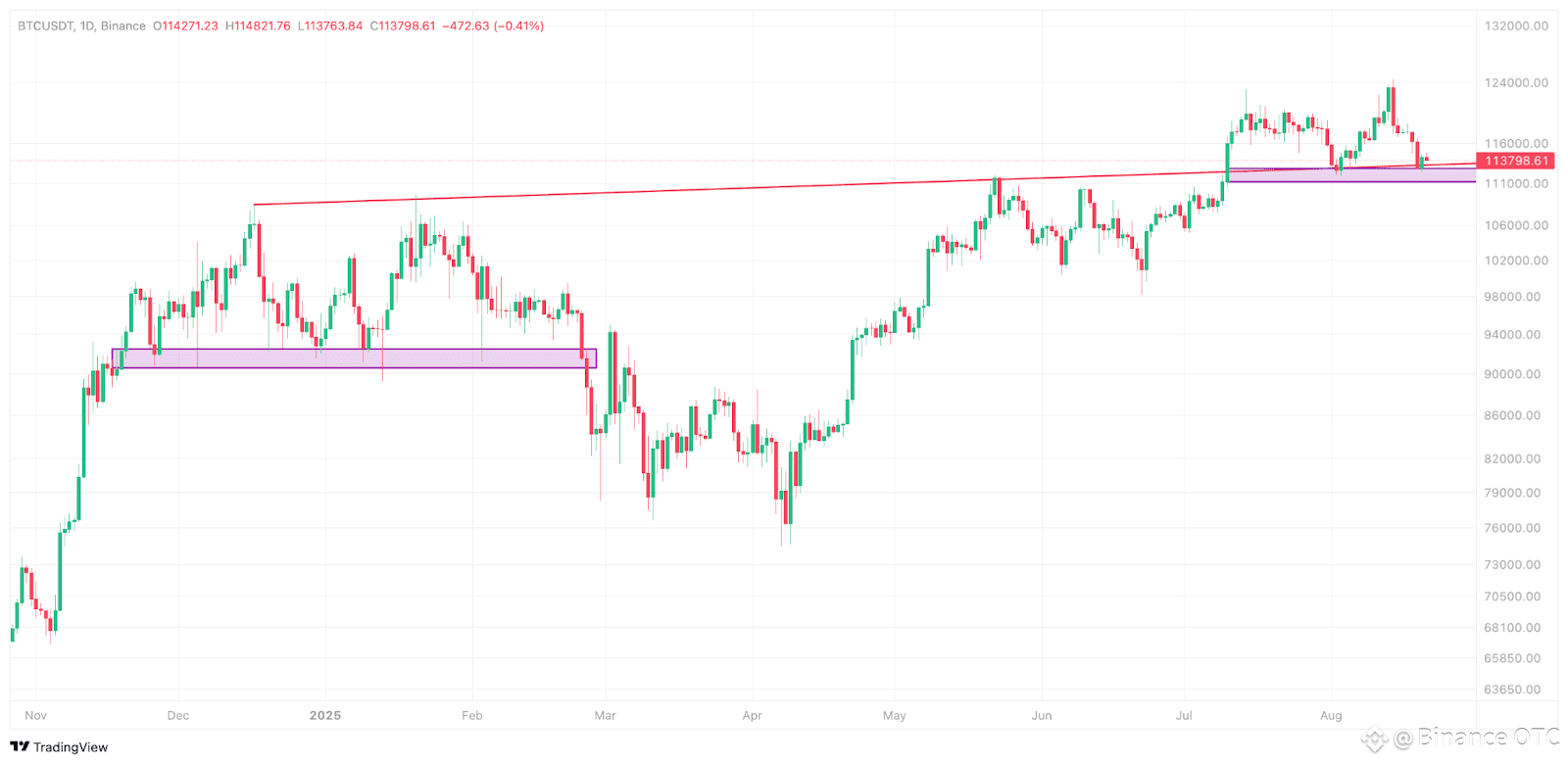 At the time of writing, BTC has found some support near the $113,000 level. The red trendline shown in the chart above, which acted as resistance in May, flipped to support at the end of July following a strong breakout on July 11, when BTC surpassed $118,000 for the first time. This bullish momentum was initially driven by the June FOMC meeting minutes, which revealed a divergence among officials regarding the pace of future rate cuts. Additionally, aggressive capital inflows into BTC ETFs amplified market sentiment, pushing BTC decisively above resistance with increased volume.