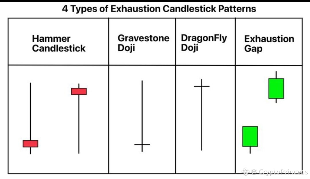 Real trend exhaustion in crypto often shows up as a cluster of subtle changes: