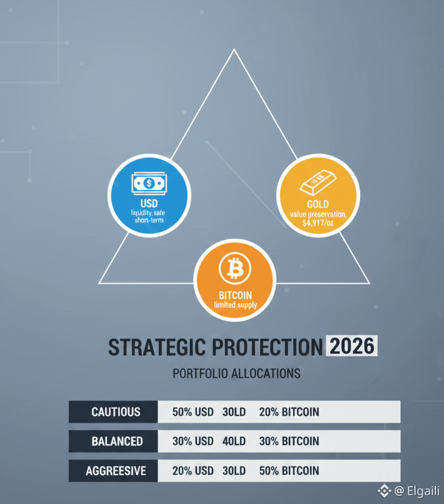 Conservative portfolio: 50% USD – 30% Gold – 20% Bitcoin