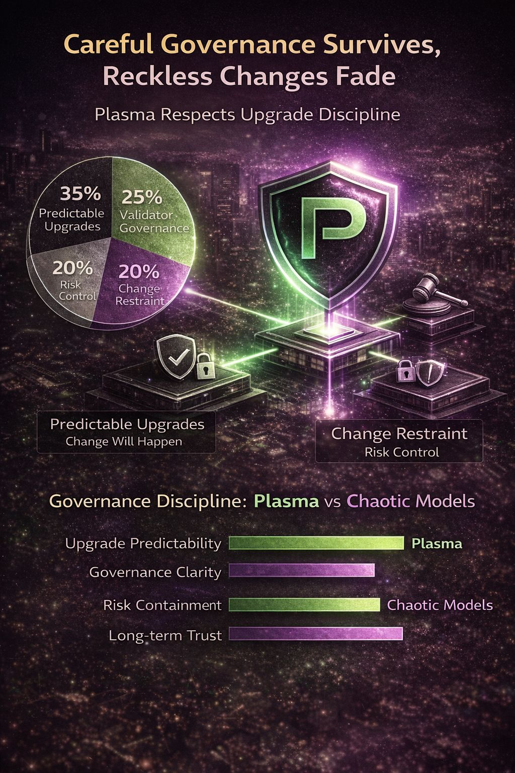 Fast upgrades look impressive, but in markets, change itself is a form of risk. After trading through multiple cycles, I’ve learned that what hurts most isn’t upgrades—it’s unpredictable upgrades. That’s why governance and upgrade discipline became a real topic again in 2024, especially for infrastructure-focused networks like Plasma.