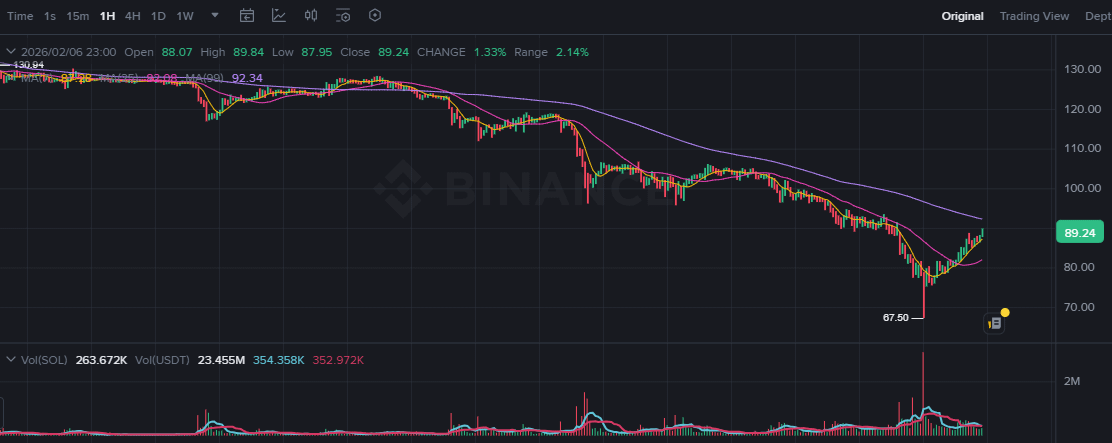 Solana recently lost the long-standing $100 support that had held for nearly two years, triggering a brutal sell-off. Last week’s move had all the signs of capitulation: massive liquidations, forced selling, and a sharp wick down to $67 before bouncing. Now, price is stabilizing around the $80 zone and that may already be enough for big players.