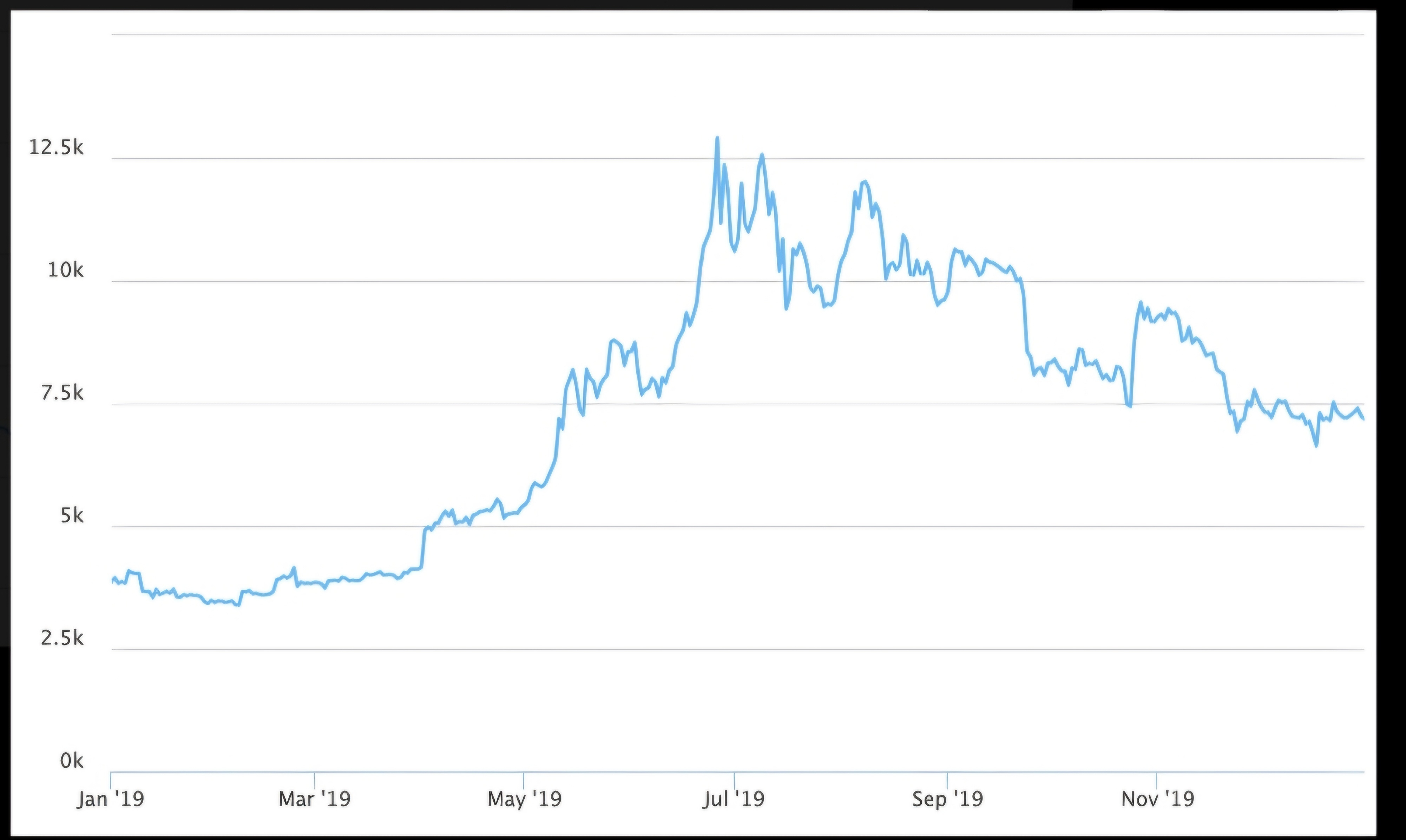 2019: Slow Recovery and a Mid-Year SurgeKicked off at ~$3,800.