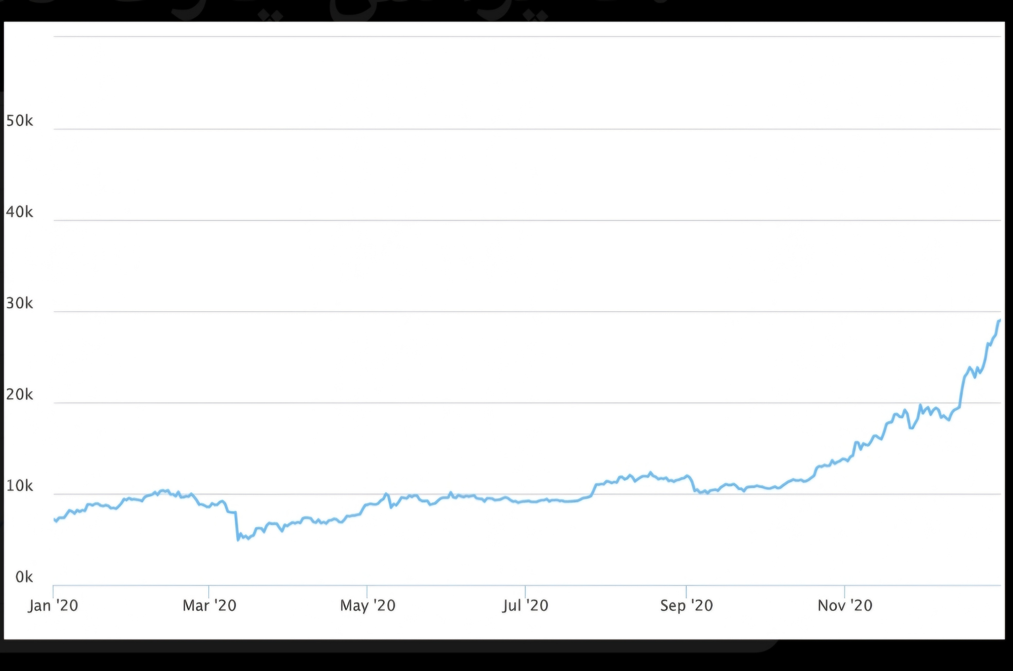 Exploded to a high of ~$29,245 by December.
