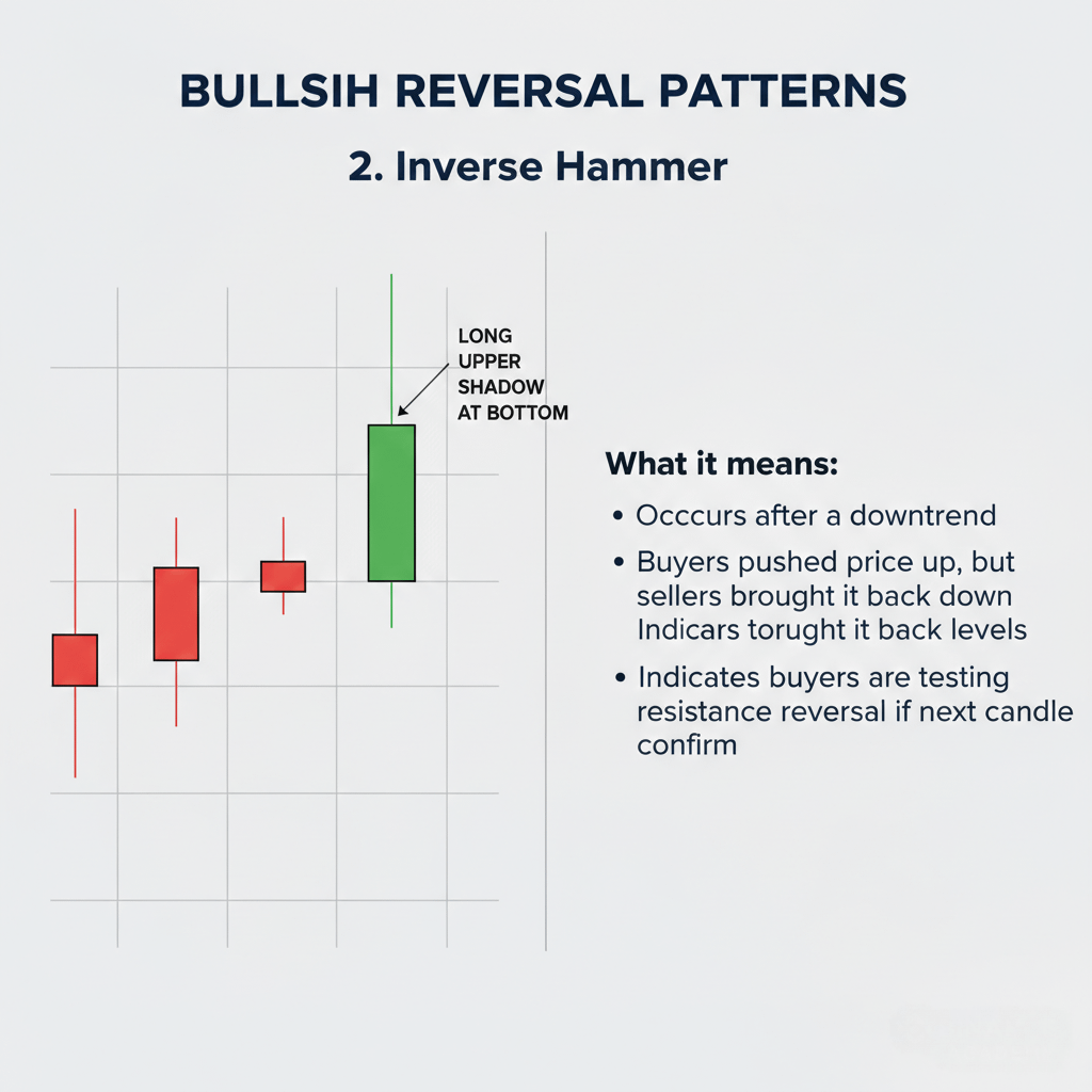 What it means: Also occurs after a downtrend. The long upper wick suggests that buyers attempted to push the price up, but sellers brought it back down. However, the closing price remaining near the open indicates that buyers might be testing resistance levels. A bullish confirmation from the next candle (e.g., a strong green candle) would confirm a potential reversal.