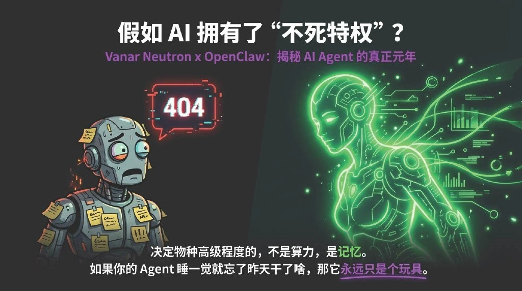 你的本地硬件可能会坏,云服务器可能会宕机,但只要 Vanar 链还在出块,你的 Agent 的记忆(经验、策略、偏好)就永远存在。代理的肉体(代码进程)可以死一万次,但它的灵魂(Neutron Memory)永存。