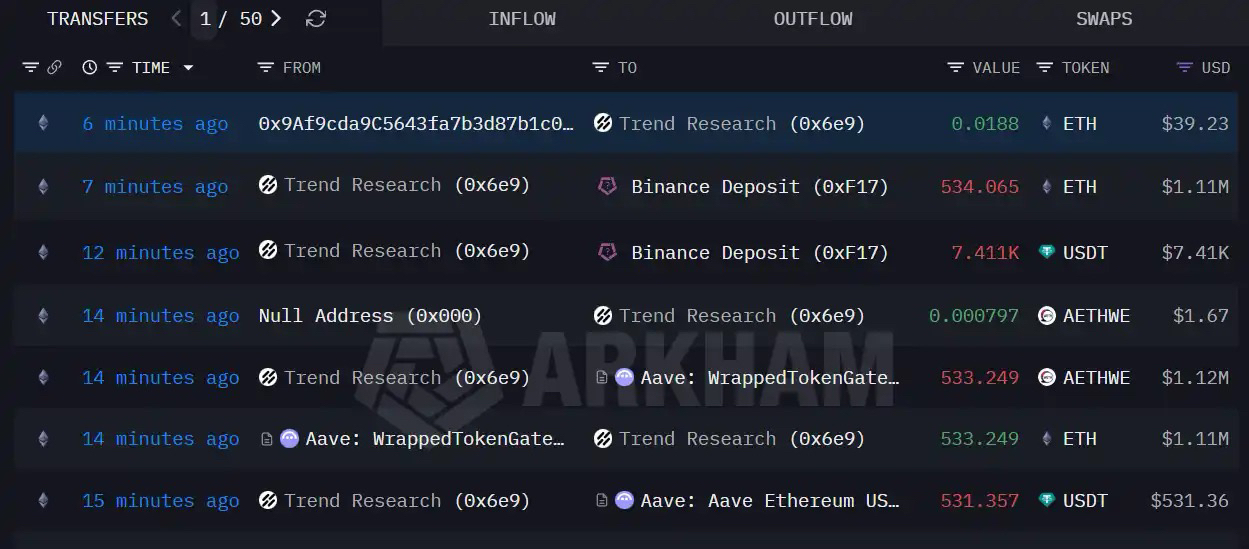 就在今天,易理华旗下 Trend Research,ETH 彻底清仓。