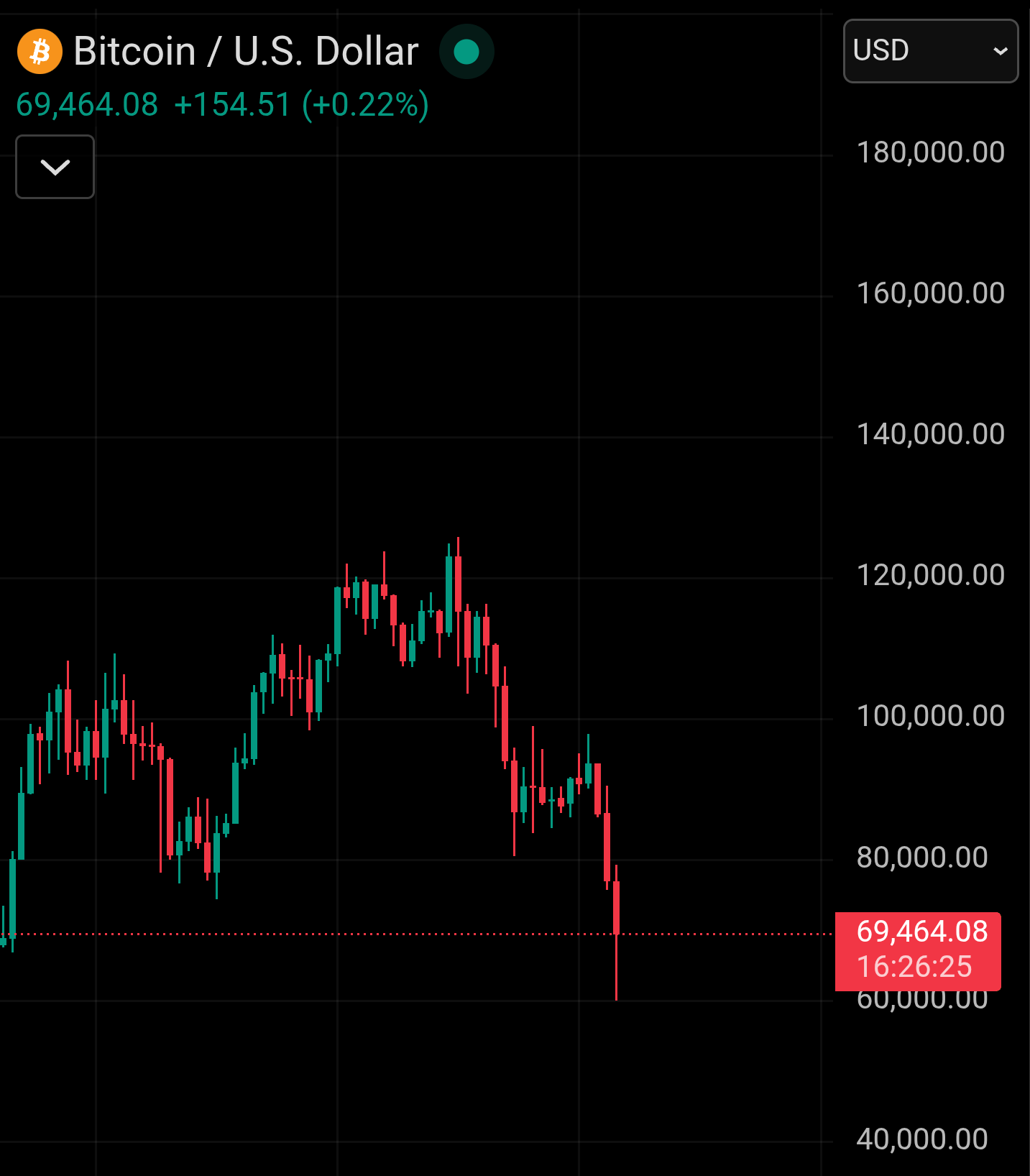 Bitcoin is currently trading near the 69k region. This is not just a random level. It is a major psychological and historical zone where buyers and sellers are fighting for control.
