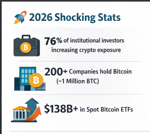 تقارير حديثة تُظهر أن نسبة كبيرة من المستثمرين المؤسسيين يخططون لتوسيع تعرضهم للأصول الرقمية في 2026، مع توقعات بأن يكون تخصيص الأصول الرقمية في محافظهم أعلى من السنوات السابقة.