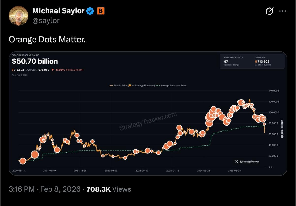 Taken together, the timing suggests Saylor is once again downplaying short-term hesitation and reinforcing a familiar narrative: volatility fades, accumulation compounds, and the orange dots - not the headlines - tell the real story.