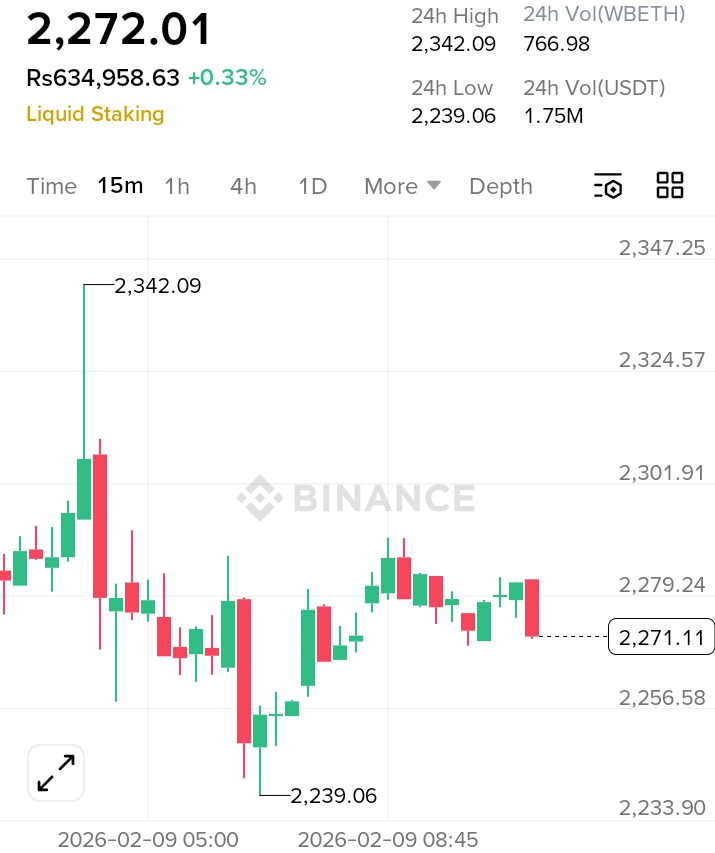The price is currently "choppy." For a bullish reversal, WBETH needs to break and hold above the 2,350 level with increased volume. If it fails to hold the 2,240 support, we could see a further slide toward the 2,150 range.