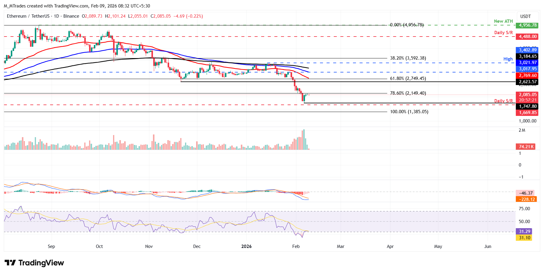 Ethereum ($ETH ): Stuck at $2,149 after plunging to $1,747 (lowest since May '25!). Key resistance at $2,149 â smash through for a run to $2,500? Or bears drag it back down? RSI at 31 screams oversold, but MACD says caution! đ„ #ETH