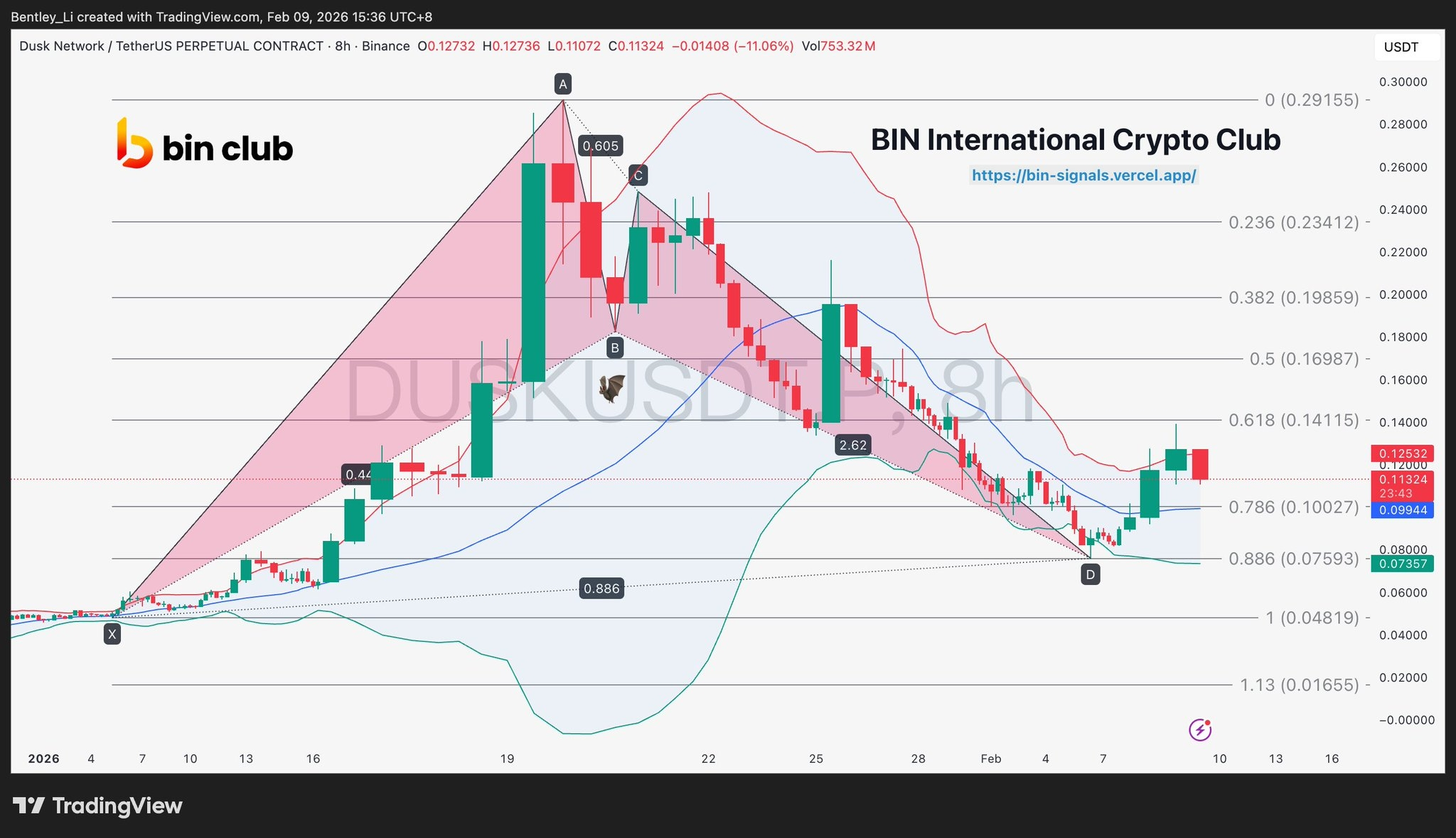 #Dusk 你看到的强不是强,而是机构在控盘横盘派发,韭菜接盘,然后就没了,DUSK标准的蝙蝠形态,正好到0.886,看懂的点赞回复1.