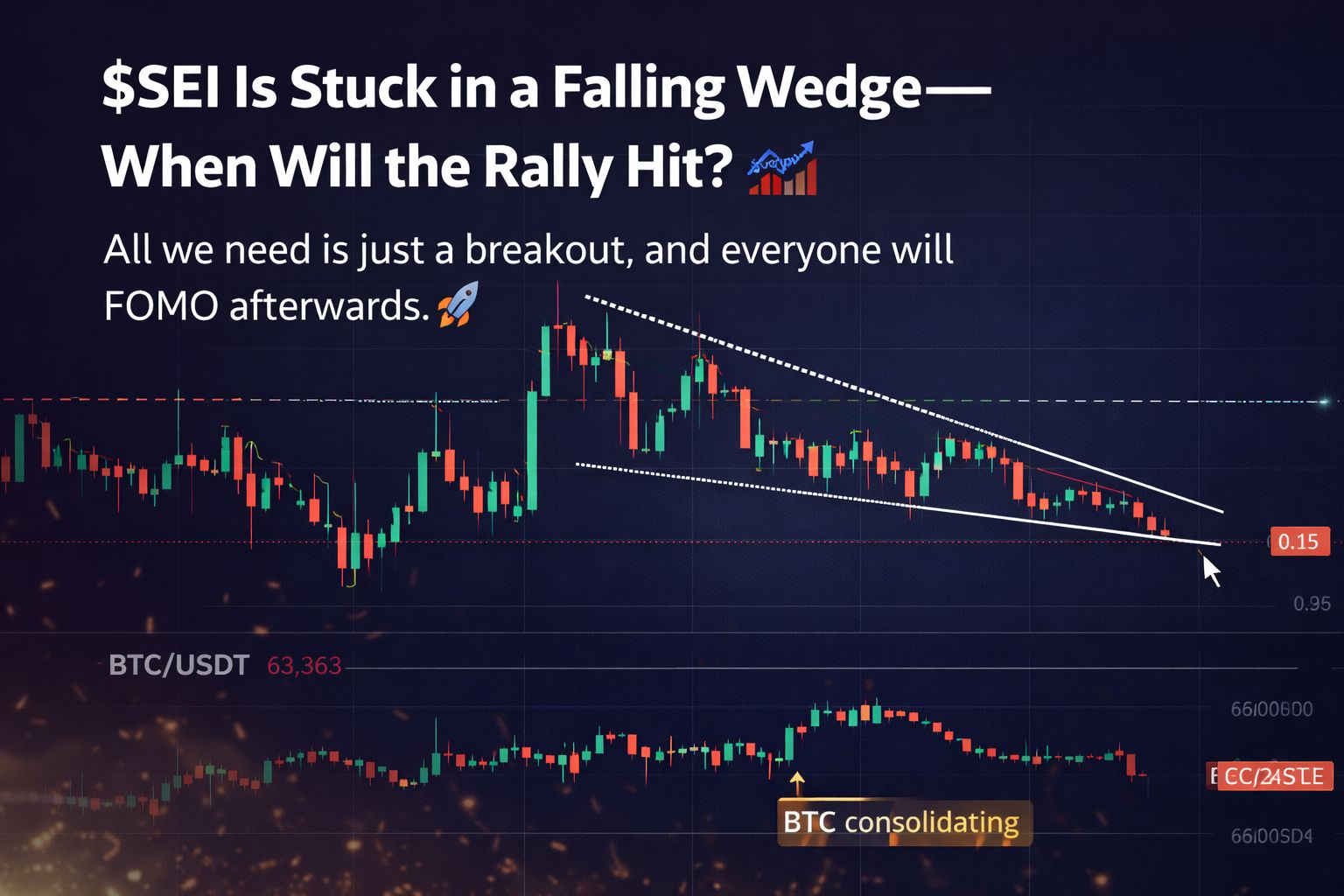 $SEI has been trading in this falling wedge pattern for a while, and traders are waiting for the breakout that could trigger one of the most FOMO-driven rallies in #crypto .