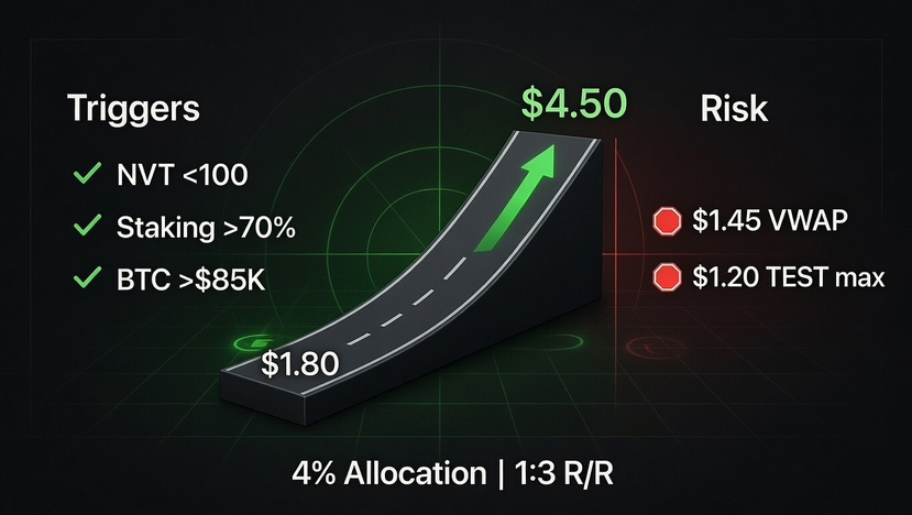 Bull trigger: NVT<100 + staking>70% + BTC>$85K