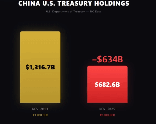 Roughly one-third of China’s trade is now settled in yuan. Each percentage point shifted is permanent demand for dollars that never comes back.