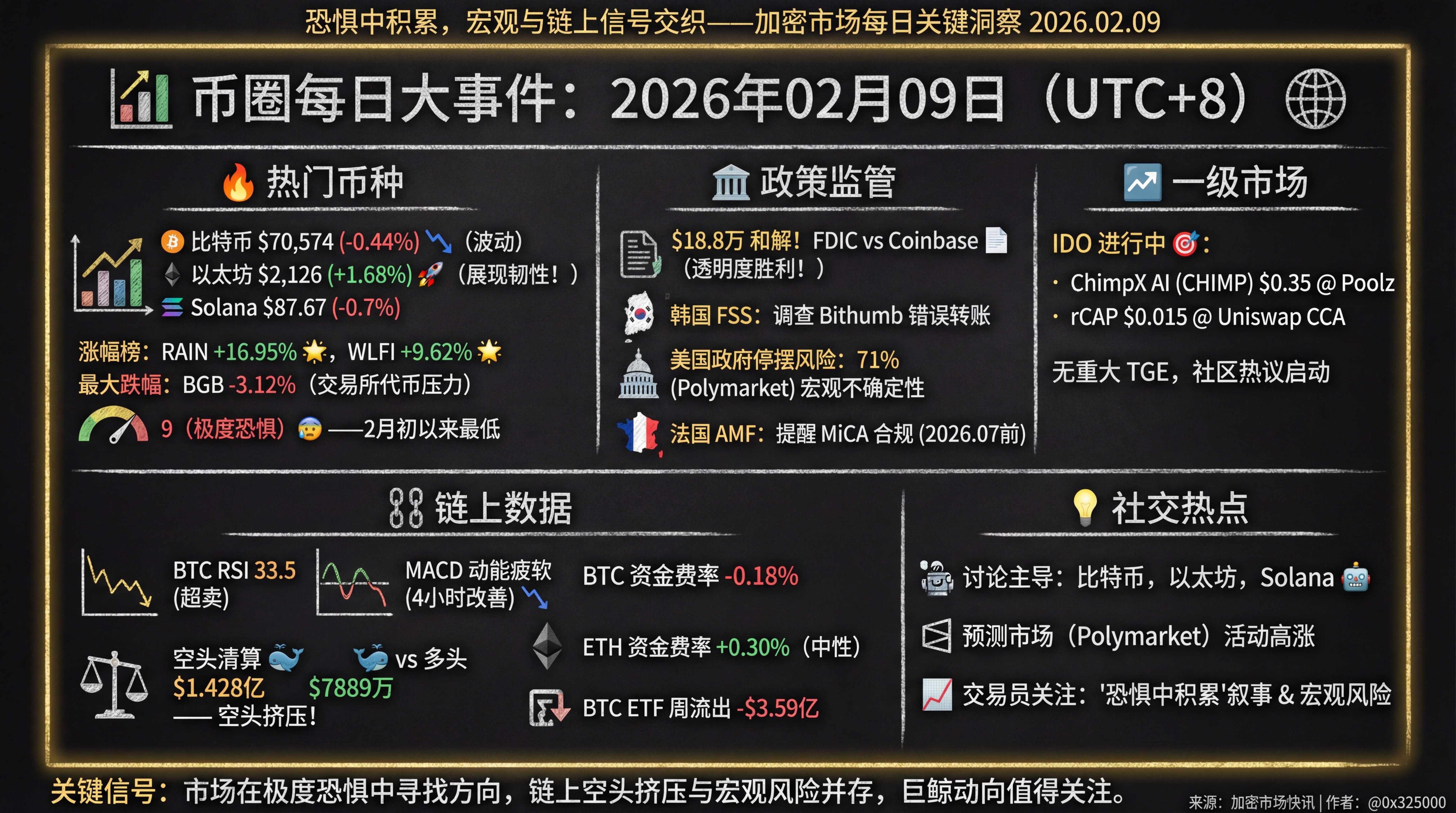 恐惧贪婪指数降至 9(极度恐惧)——2月初以来最低水平 😨。